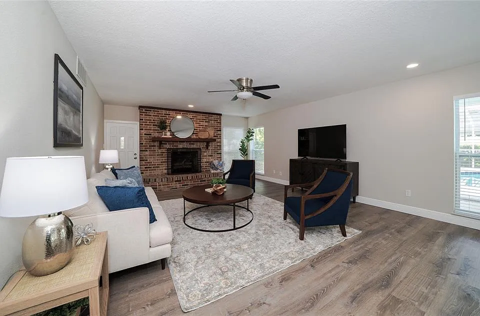 In a setting amongst the beautiful oaks of Temple Terrace , with the Hillsborough River and the Temple Terrace Golf and Country Club in close proximity, this home defines luxury. Walking into this home you immediately notice the 30 ft ceilings with wood tongue and groove craftsmanship. The open floor plan with the living room and dining room combo overlook a beautiful pool area with lots of space for entertaining. The master bedroom is a true retreat, complete with walk-in closets and an updated master bathroom featuring a stand-up shower and a luxurious jacuzzi tub. An additional oversized bedroom on the ground level opens up to one of the three outdoor entertaining spaces through sliding doors, providing a perfect blend of indoor and outdoor living. The open floor plan is designed to impress, highlighted With an updated kitchen sure to please any chef, the kitchen features an eat-in breakfast nook and bar seating. This phenomenal home also includes two fireplaces, perfect for cozy evenings. Step outside to the screened-in outdoor area where you’ll find a heated, saltwater pool with a beach shelf and a waterfall spa, making it an ideal spot for relaxation and entertainment. With three separate outdoor entertaining areas, a fully fenced yard, and tons of storage, this home is perfect for both quiet family time and lively gatherings. Upstairs, an incredible loft overlooks the pool and living space, leading to two more generously sized bedrooms, each with its own loft area. Additional features include a new roof installed in 2023, a reverse osmosis system, water softener, an updated master bathroom with a spa tub, a Bluetooth intercom stereo system throughout the home, and ample storage space. The oversized 2.5 car garage has plenty of space for two cars plus a golf cart. Temple Terrace allows golf carts to be driven on the street one of the few communities that allow this. Within walking distance is the Temple Terrace family Recreation complex one of the nicest in Tampa featuring activities for youth up to elder adults. Located just minutes from USF, Busch Gardens, I-75, I-4, hospitals, Ybor City, and Downtown Tampa, this home offers convenience and accessibility to some of the best attractions and amenities in the area. Schedule a private showing today and experience the perfect blend of luxury, comfort, and convenience!